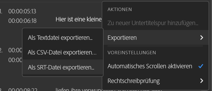 How I realised its the file’s name length: I tried to export the subtitles in the .CSV-Format. The file was created, but when I tried to open it, which was done by Excell (Windows-PC), a message warned, the filepath would excede more then 259 characters and I should shorten the file’s name.